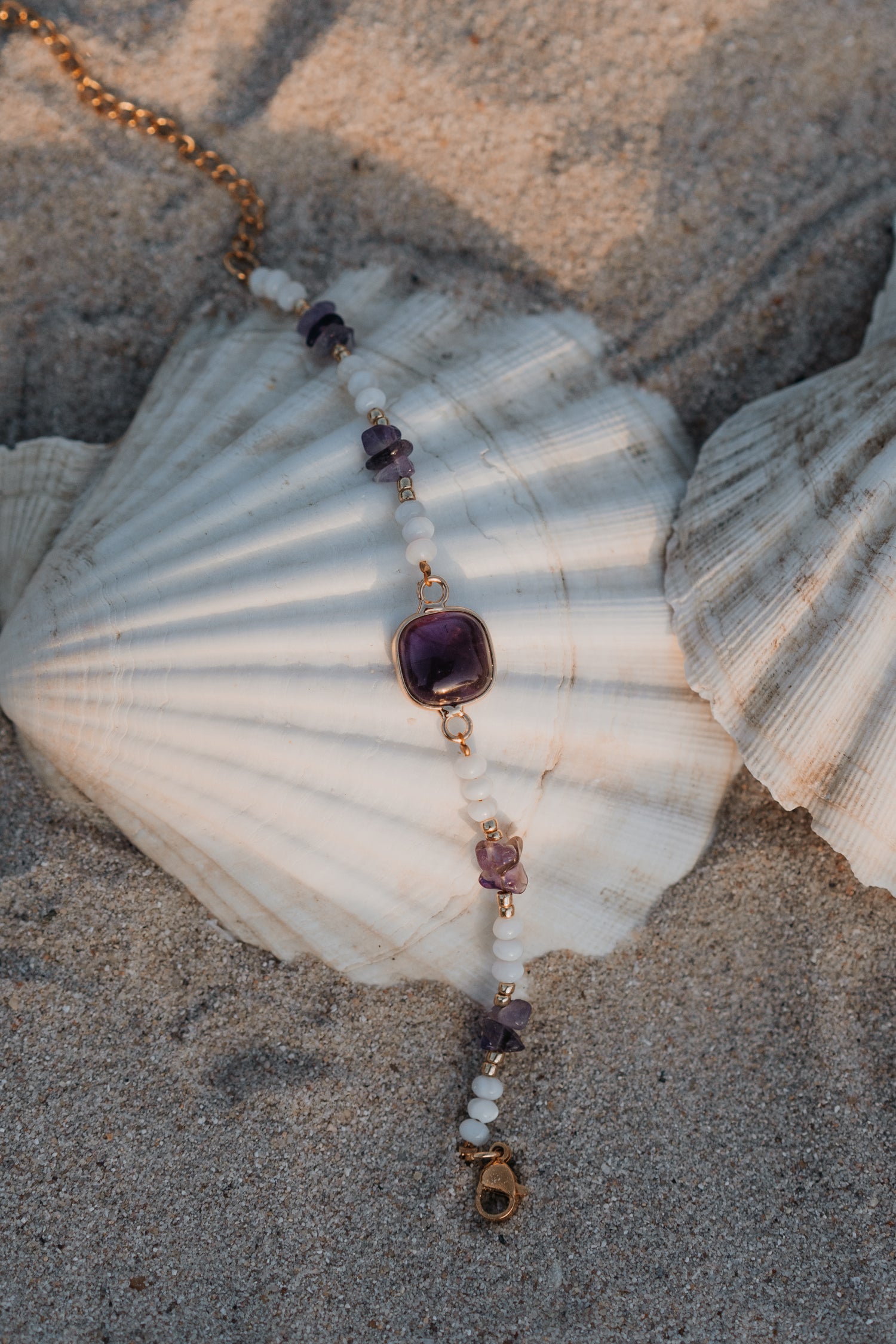 Ein violetter Klassiker mit beruhigender Wirkung. Er gilt als Schutzstein für Geist und Seele und unterstützt dabei, Klarheit und innere Balance zu finden.