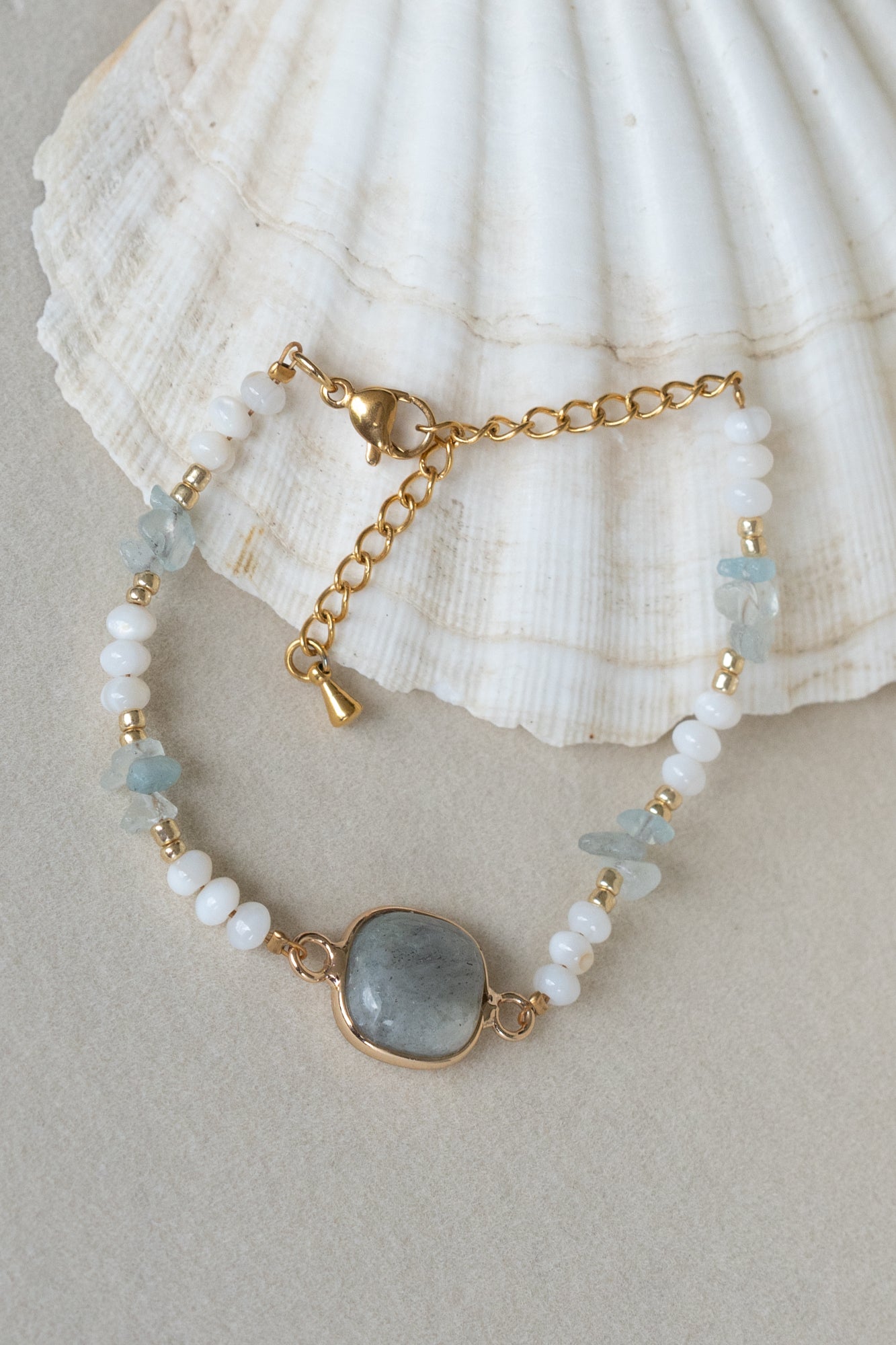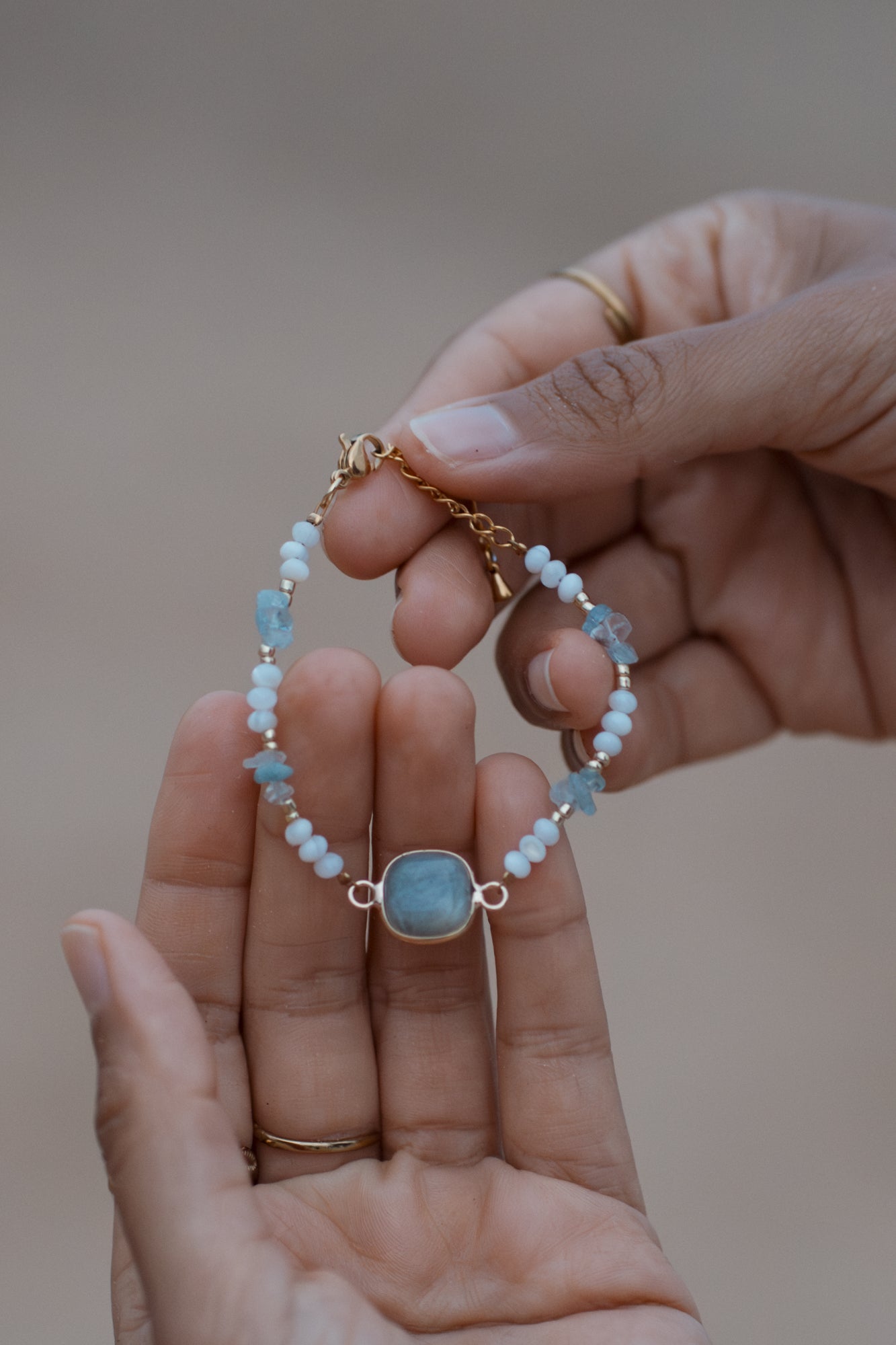 Der zartblaue Edelstein erinnert an das Meer – er soll für Gelassenheit, Mut und eine klare Kommunikation sorgen.